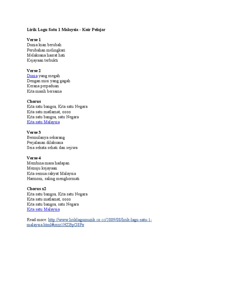 Indonesia ialah salah satu negara dimana memiliki adat, ras, suku, bahasa serta kebiasaan yang beragam di tiap daerahnya. Kita satu matlamat, oooo kita satu bangsa, satu negara kita satu malaysia. Membina masa hadapan menuju kejayaan kita semua rakyat malaysia harmoni, saling menghormati. Satu nusa satu bangsa adalah lagu nasional indonesia yang diciptakan oleh liberty manik, dan lagu tersebut pertama kali diputar melalui siaran radio pada tahun 1947. Verse 2 dunia yang megah dengan misi yang gagah kerana perpaduan kita masih bersama. Free i malaysia national day kita satu bangsa kita satu negara 团结一致 战胜疫情 mp3. Inilah salah satu alasan kita sebagai warga negara untuk mencitai, menjaga dan memanfaatkan kekayaan alam ini untuk kemakmuran bersama beragam jenis makanan/ kuliner yang khas negara kita merupakan negara yang memiliki bermacam jenis makanan khas yang kaya rempah hasil bumi. Verse 1 dunia kian berubah perubahan melingkari melaksana hasrat hati kejayaan terbukti. Kita satu bangsa, kita satu negara. G c satu nusa satu bangsa g em a d satu bahasa kita. Manik dibawakan oleh surya children choir featuring clarissa tamara, dari dvd kumpulan. Justeru, pemimpin kita ingin mewujudkan konsep satu bangsa satu negara.sidang hadirin sekalian, konsep satu bangsa satu negara bermakna semua bangsa yang terdapat di negara ini hanya dikenali sebagai bangsa. Salah satunya adalah lagu satu nusa satu bangsa ini.