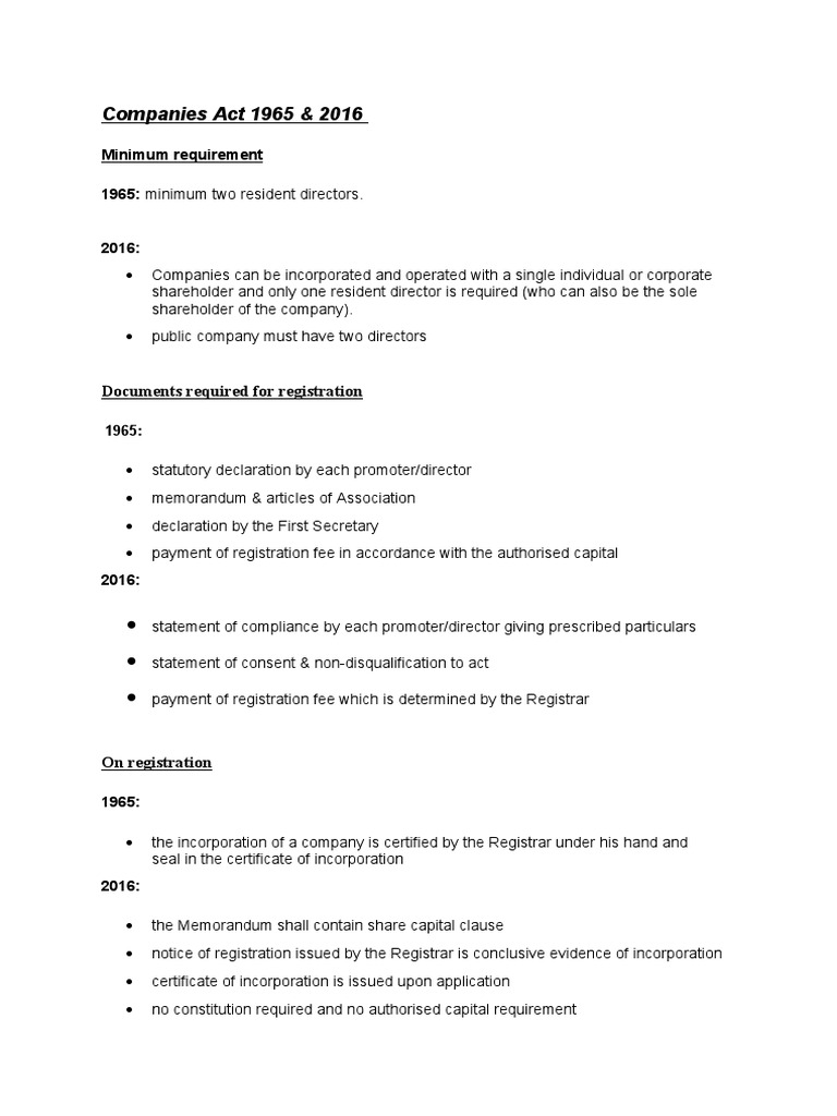 Types of share | company account | ca cpt | cs & cma foundation | class12. The companies act 1965 malay akta syarikat 1965 is a malaysian law which relates to companies the companies act 1965 in its current form 15 august 2007. The companies act 1965, in its current form (15 august 2007), consists of 12 parts containing 374 sections and 10 schedules (including 36 amendments). Any board established to manage employees provident fund superannuation schemes or any other fund. The company has no outstanding penalties or offer of compounds under the companies act 1965.