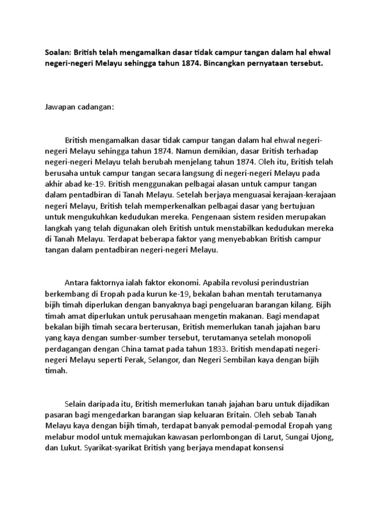 SEJARAH TINGKATAN DUA: Penasihat British Mengancam ... from 3.bp.blogspot.com Perak merupakan negeri melayu terawal yang menerima kemasukan pengaruh politik british. Isi kandungan sorok 1 dasar tidak campur…show more content… peluang sir andrew terbentang luas apabila raja abdullah menulis surat meminta bantuan british. Penglibatan british di johor bermula sejak kedatangan raffles dan pembukaan singapura pada tahun 1819. Bhd.<br />campurtangan british di tanah melayu. Johor merupakan negeri melayu terakhir yang menerima penasihat british. Secara keseluruhannya, di bawah dasar british, orang melayu telah menjadi lebih bebas, sihat. British mengamalkan dasar tidak campur tangan dalam hal ehwal negerinegeri melayu sehingga tahun 1874. (ii) peringkat sebelum campur tangan british di tanah melayu.